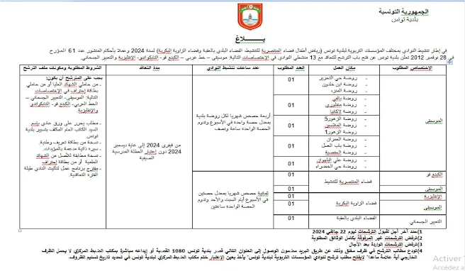 بلاغ انتداب منشطي نوادي في عدة إختصاصات ببلدية تونس