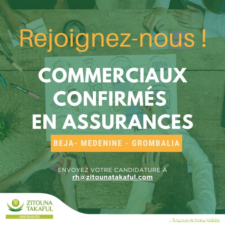 📢 Assurances Zitouna Takaful Recrute : 𝗖𝗼𝗺𝗺𝗲𝗿𝗰𝗶𝗮𝘂𝘅 𝗖𝗼𝗻𝗳𝗶𝗿𝗺𝗲́𝘀 𝗲𝗻 𝗔𝘀𝘀𝘂𝗿𝗮𝗻𝗰𝗲𝘀 !