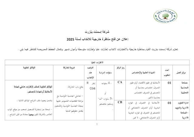 تعتزم شركة إسمنت بنزرت فتح مناظرة خارجيّة بالإختبارات لإنتداب