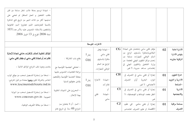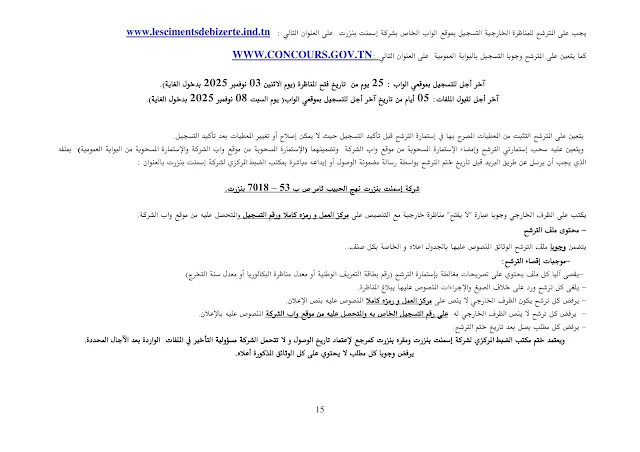يجب على المترشح للمناظرة الخارجية التسجيل بموقع الواب الخاص بشركة إسمنت بنزرت على العنوان التالي :