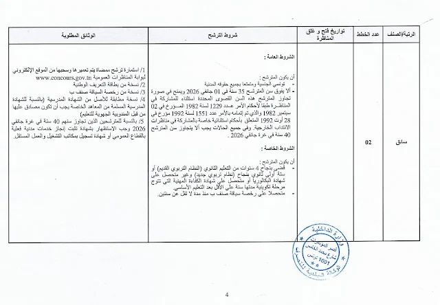 لانتداب عدد 1 متصرف مستشار وعدد 2 متصرف وعدد 2 سائق وعدد 2 عامل