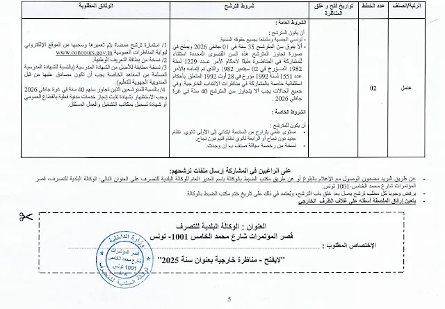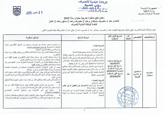 فتح مناظرة خارجية بالوكالة البلدية للتصرف لانتداب إطارات و أعوان : آخر أجل 29 أفريل 2026