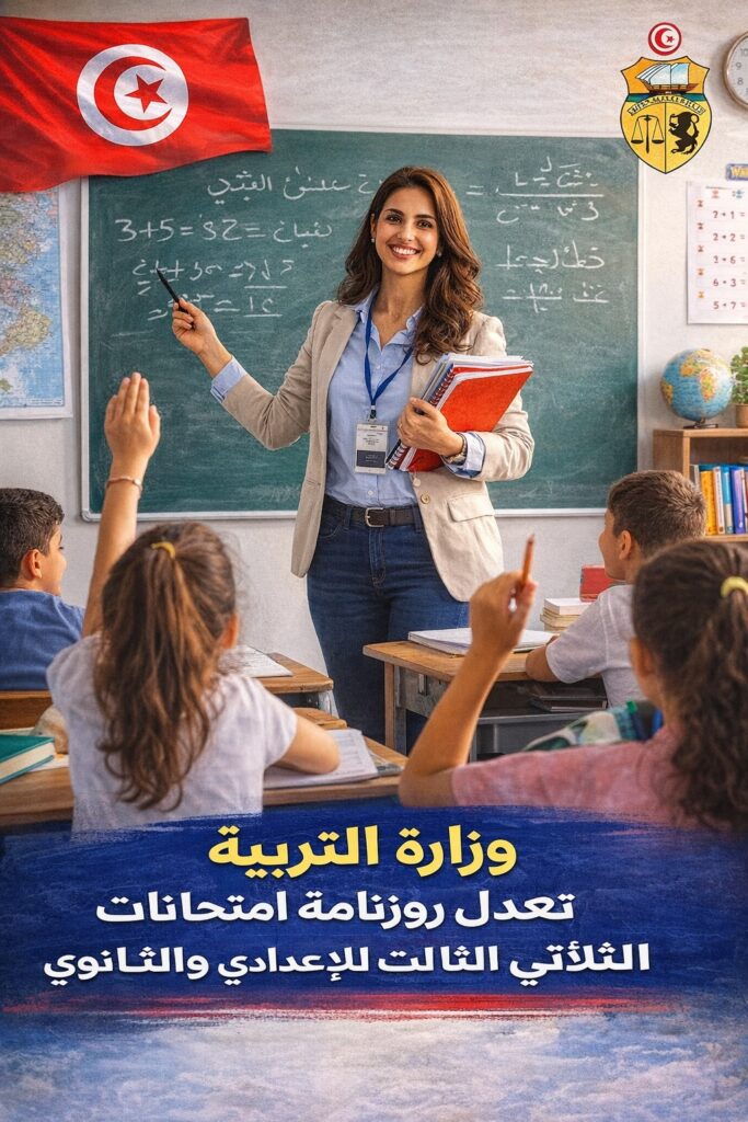 وأوضحت الوزارة، وفق وثيقة تعديلية صادرة عنها، أن فترة إنجاز الفروض التأليفية مع تعطل الدروس لمستويات السابعة والثامنة والتاسعة أساسي والأولى والثانية والثالثة ثانوي ستمتد من 18 إلى 23 ماي 2026.
