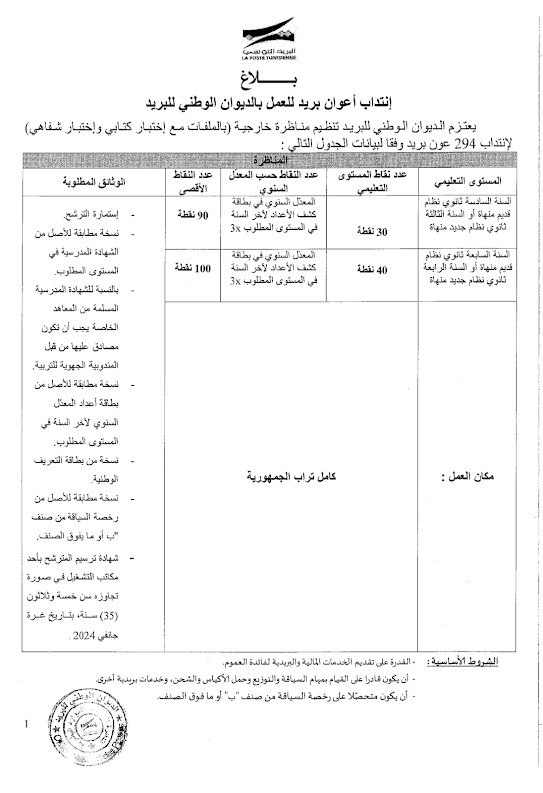 # 2024 # Concours # concours poste # Concours Poste Tunisienne # poste tunisienne